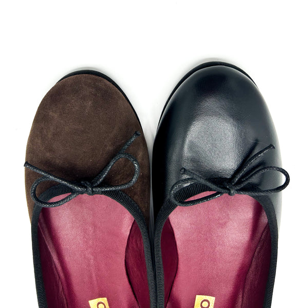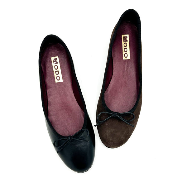 Classiche ballerine con fiocchetto. Realizzate con la lavorazione a sacchetto che le rende estremamente comode e confortevoli. La tomaia e la fodera interna sono in pelle mentre la suola è in gomma.