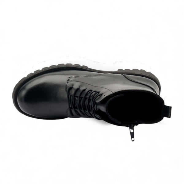 Tomaia in morbida pelle con lacci in tinta e zip laterale