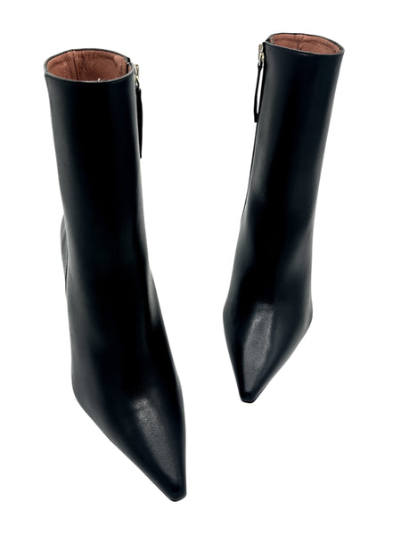 Stivaletti modello Lamia di Angel Alarcon in pelle dalla punta sfilata con zip laterale. Il tacco a spillo è alto 10 cm.