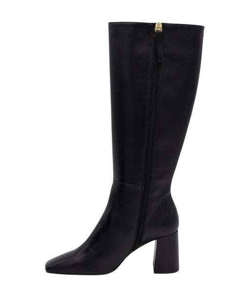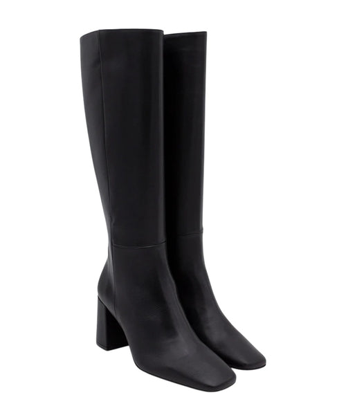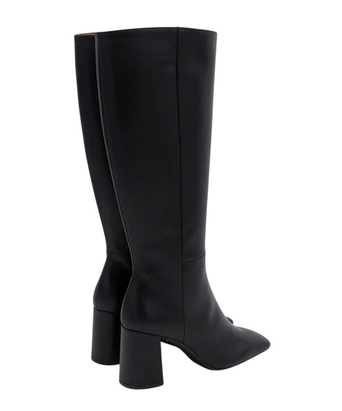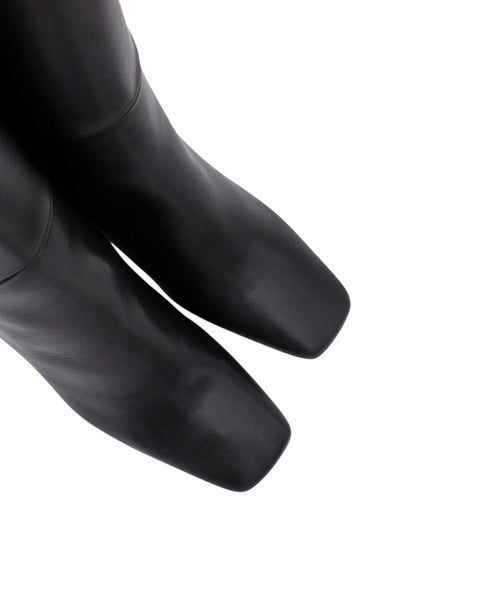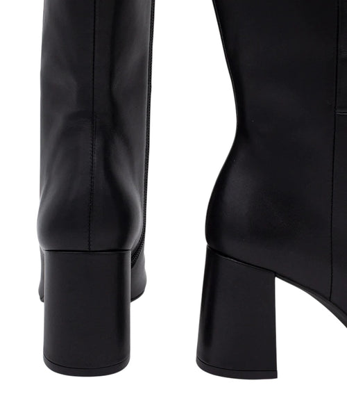 Stivali alti sotto al ginocchio dalla punta quadrata in pelle molto morbida. Come allacciatura hanno la zip laterale, il fondo è in gomma e il tacco è alto 7 cm.